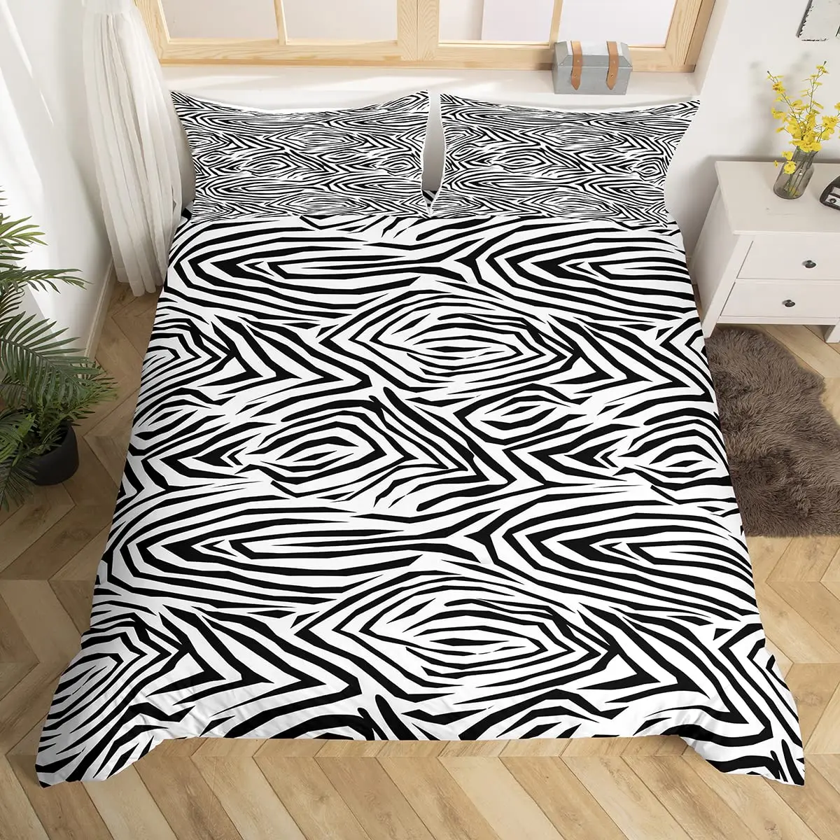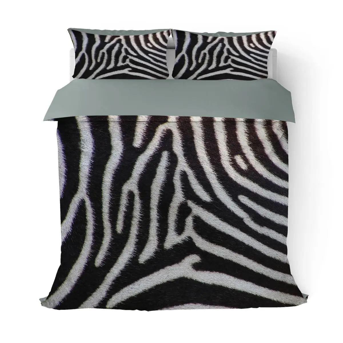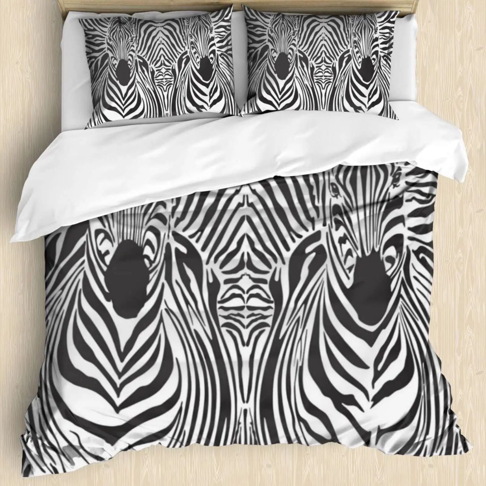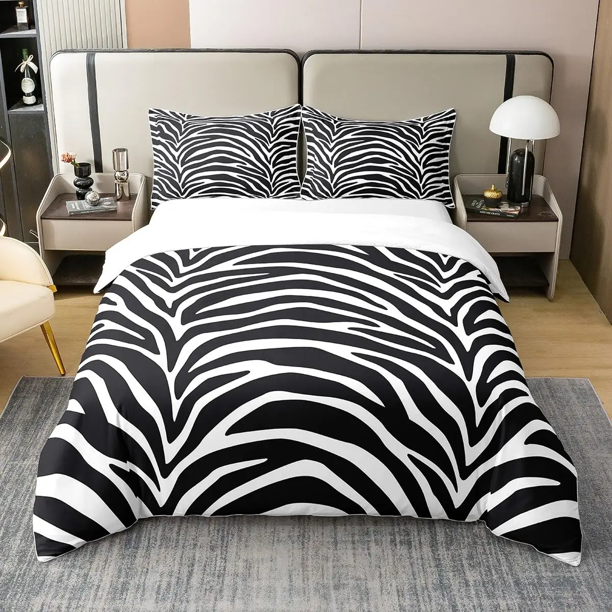 Zebra Print Bedding Set, Striped Zebra Animal Print Decorative Quilted 3 Piece Comforter Cover with 2 Pillow Shams, King Size